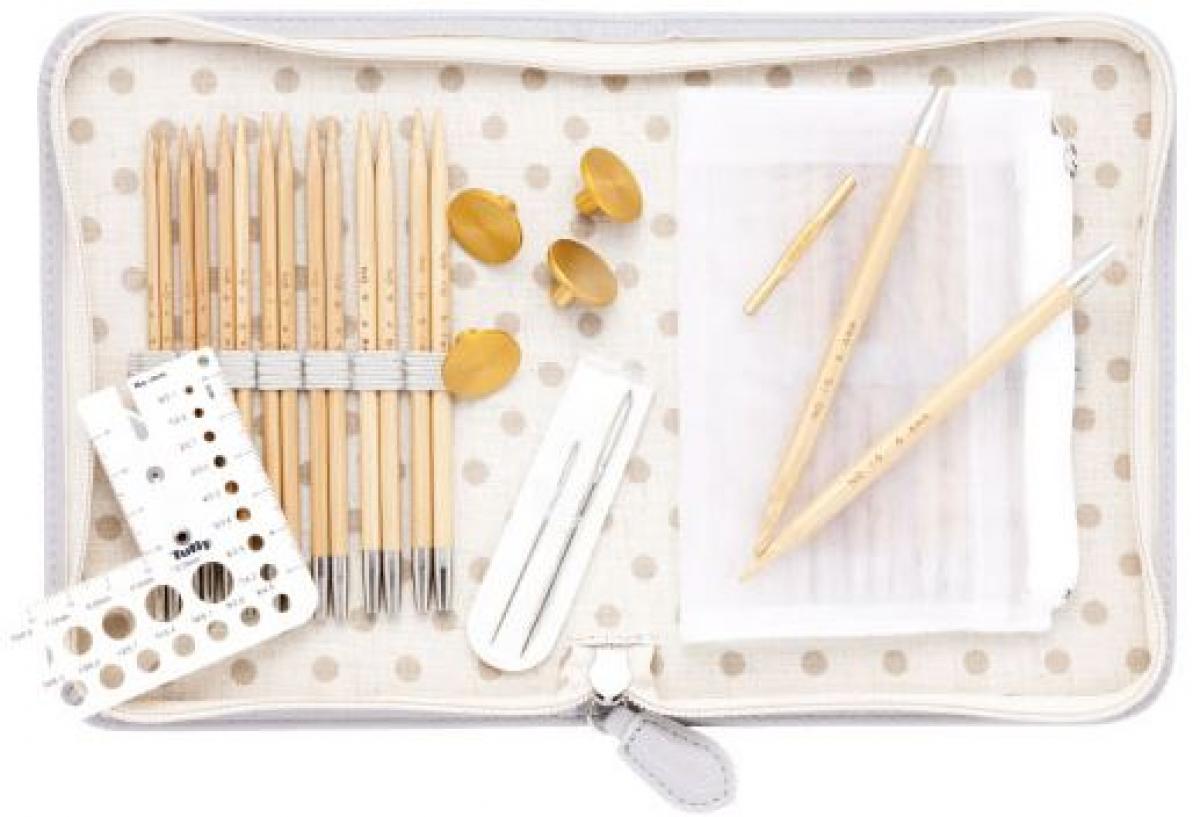 棒針と、かぎ針が両側についたような針で往復編みします。
