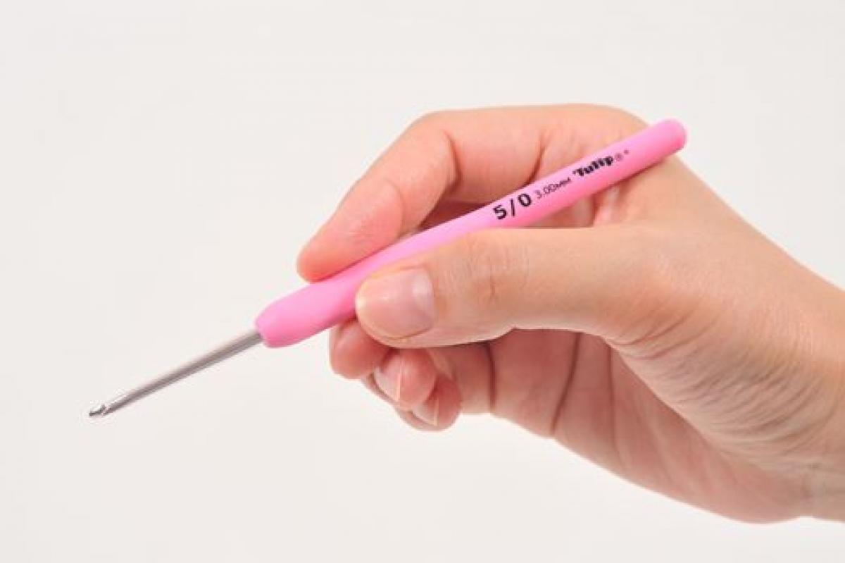 先端に「かぎ」のついた、かぎ針を使って編みます。