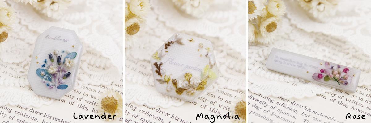 可憐な小花に石膏の白さが際立つブローチに、ほんのり香るお花のエッセンスをお楽しみください。