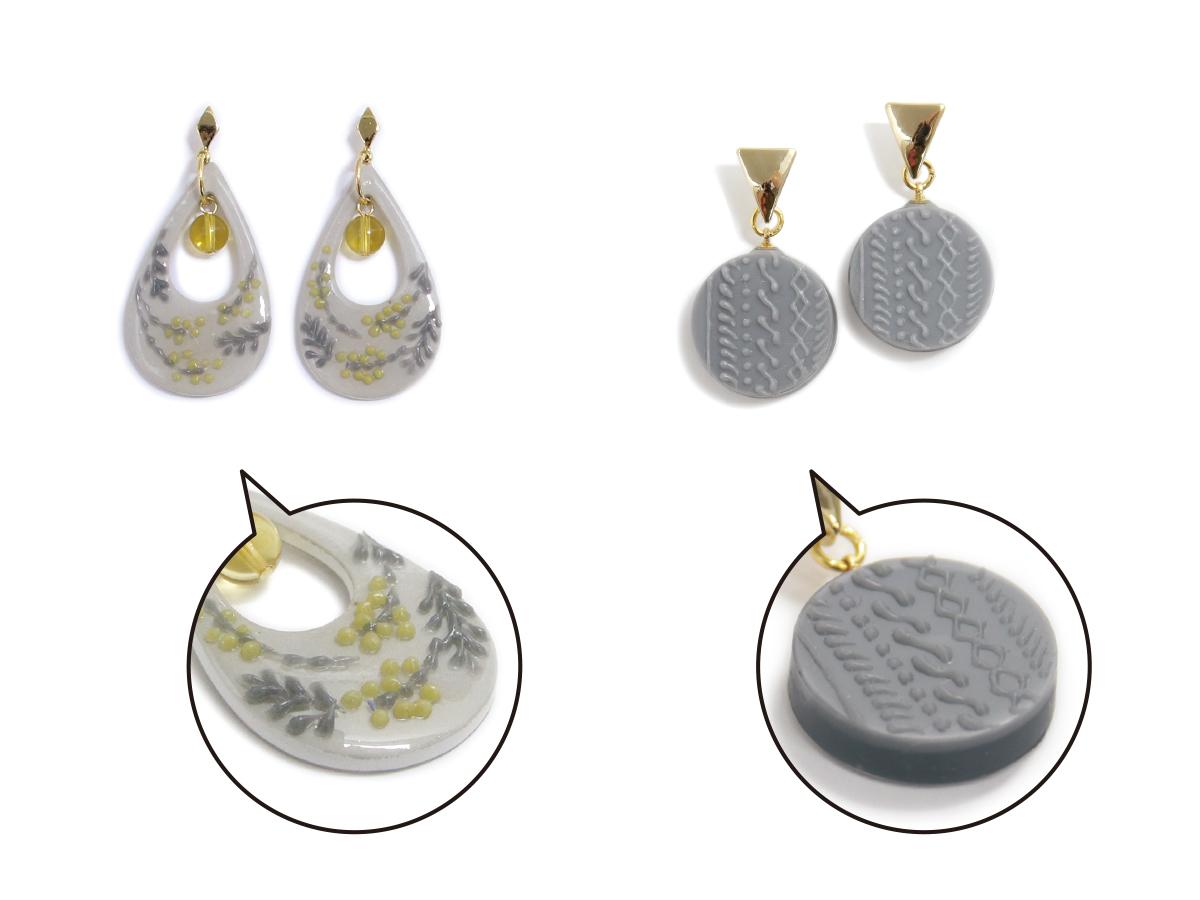 アートレジンの特徴である立体感を利用して表現した「描く」刺繍。 秋冬はニット柄でアレンジ。