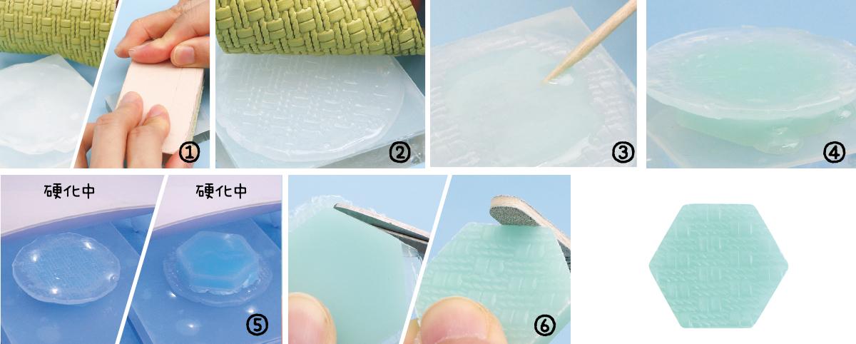 1回の 硬化ごとに少し時間を置くか、冷ましてから硬化物を取り出すようにしましょう。 万が一、変形しても再度温めると柔らかくなるので、型を取り直すことが可能です。