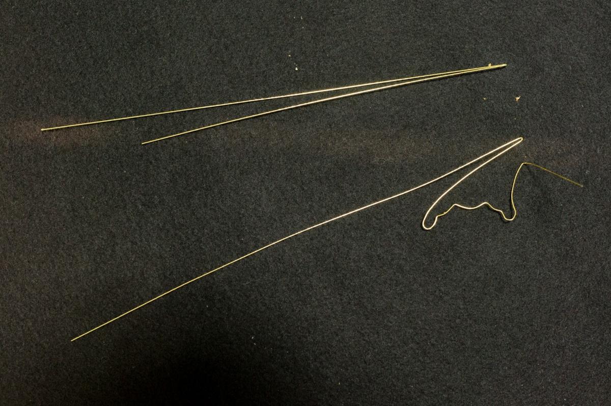 20cm(A)と25cm(B)になるようにヘアピンに曲げます。Aの部分が後羽、Bの部分が前羽になります。