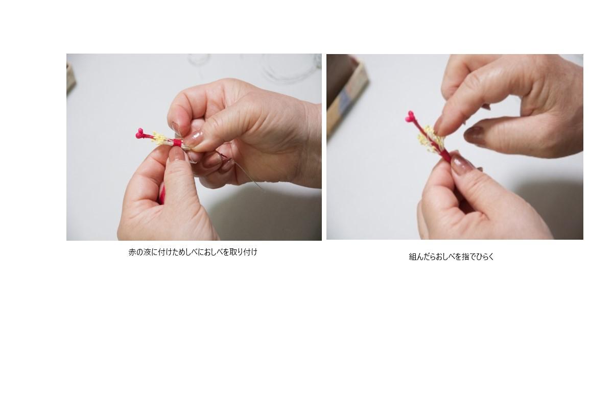 めしべ用にペップ(中)3つ。先をレッドの液に付け乾かします。