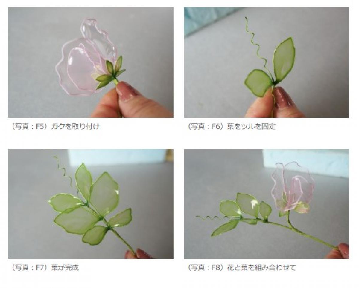 8.花と葉の茎の部分をテープで固定して向きを調整(写真:F8)