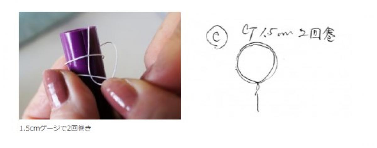 花の中心部分の花びら(C)の準備。1.5cmゲージで2回巻きします。