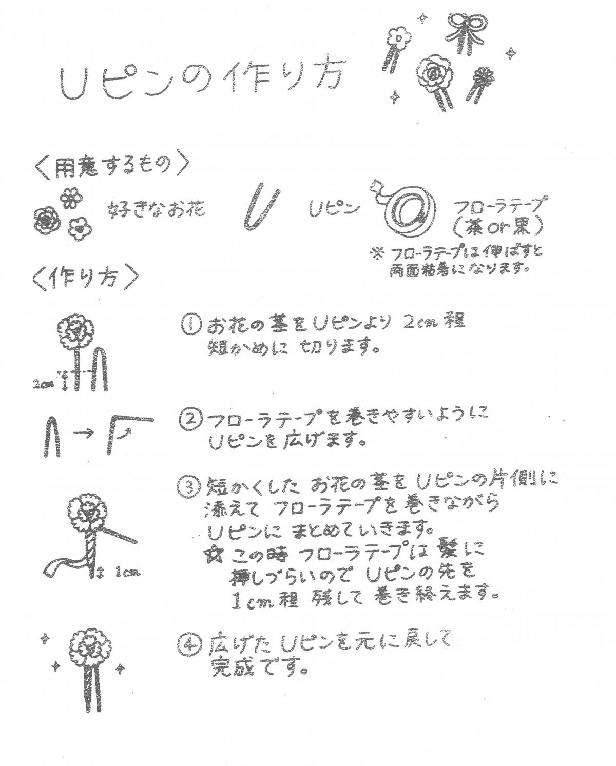 ※ この時 フローラテープは 髪に挿しづらいので Uピンの先を 1cm程残して 巻き終えます。