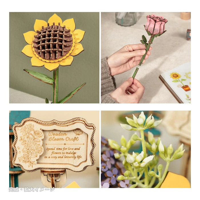 ROWOOD 木製立体パズルキット ウッドフラワー DIYフラワーブーケ robo-tw01h